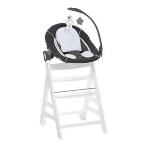 Der Treppenhochstuhl Beta+ von Hauck begleitet den Nachwuchs über viele Jahre. Das aus robuster Buche gefertigte Design ist bis zu 90 Kilogramm belastbar. In Kombination mit der auch separat verwendbaren Wippe Bouncer Deluxe kann er sogar ab der Geburt des Kindes genutzt werden. Treppenhochstuhl Beta+ Altersempfehlung: ab 6 Monaten bis ins Erwachsenenalter, belastbar bis 90 kg Material: massive Buche Verstellbarkeit: Sitz 5-fach und Trittbrett 3-fach verstellbar, Gurtsystem stufenlos verstellbar Sicherheit: Vorderbügel, Durchrutschschutz, 5-Punkt-Gurt Ausstattung: Essbrett, Vorderbügel, 5-Punkt-Gurt, 2-teilige Sitzauflage, Räder Lieferumfang: Hauck Treppenhochstuhl Beta+, Essbrett, Sicherehitsbügel, 5-Punkt-Gurt, Sitzauflage Charcoal Der Treppenhochstuhl Beta+ setzt auf Flexibilität: Die Sitzhöhe und die Höhe des Fußtrittes sowie deren Tiefe lassen sich durch ein Stecksystem bequem inidividuell anpassen. So genießen die Kids stets auf ihre Proportionen angepassten Sitzkomfort. Wahlweise ist die Nutzung alleinstehend im Zimmer mit Essbrett oder ohne direkt am Tisch möglich. Anstelle des Essbrettes ist der Hochstuhl mit dem Vorderbügel für eine optimale Sicherheit des Kindes nutzbar. Bei der Verwendung des Esstisches oder Vorderbügels bietet der montierte Schrittgurt Sicherheit gegen ein Durchrutschten des Kindes. Das 5-Punkt-Rückhaltesysstem ist einfach an der Rückenlehne mit einem Klettsystem zu befestigen und stufenlos an die Körpergröße des Kindes anzupassen. Die zweieilige Sitzauflage bietet dem Kind einen erhöhten Sitzkomfort. Der Hochstuhl ist absolut kippsicher und verfügt für ein leichtes Umstellen in der Wohnung über praktische Räder. Damit ist der Beta+ ein praktischer Mehrzweck-Hochstuhl, der für eine langjährige Nutzung ausgelegt ist. Wippe Bouncer Deluxe Melange Grey Altersempfehlung: ab Geburt bis max. 9 kg Material: Kunststoff, Metall, Textil Verstellbarkeit: einhändig verstellbare Rückenlehne mit Liegeposition Sicherheit: verstellbares 3-Punkt-Gurtsystem Ausstattung: herausnehmbarer Sitzverkleinerer, abnehmbares Untergestell, abnehmbares Mobile Lieferumfang: Wippe Bouncer Deluxe, Sitzverkleinerer, Mobile Mit der Wippe Bouncer Deluxe kannst Du Deinen Hauck-Hochstuhl Alpha+ bzw. Beta+ bereits ab der Geburt Deines Babys nutzen. In der ergonomisch geformten Schale liegt der Nachwuchs immer bequem. Der weich gepolsterte Sitzverkleinerer schmiegt sich angenehm an und stützt den Kinderkopf ab. Eine seitliche Polsterung garantiert zusätzlichen Halt. Für maximale Sicherheit ist der Alpha Bouncer mit einem 3-Punkt-Gurt ausgestattet. Die große Liegefläche kannst Du mit nur einer Hand mehrfach verstellen. So ist immer die richtige Position zum Füttern oder Spielen dabei. Auch eine Liegeposition ist möglich. Toll: Wenn Du den Hochstuhl samt Aufsatz an den Tisch stellst, kann Dein Baby von Anfang an am Familienleben teilhaben. Gleichzeitig schonst Du beim Füttern Deinen Rücken. Dein Baby hat Lust auf Abwechslung? Dann kannst Du den Babyaufsatz mit einem Klick auf dem flexiblen Untergestell befestigen. Durch die Bewegungen schwingt der Bouncer hin und her – perfekt zum entspannten Einschlafen. Das mitgelieferte Mobile animiert Dein Kind zum Greifen und Drehen. Gleichzeitig fördert es seine motorischen Fähigkeiten. Der Spielbogen kann nach Belieben zur Seite gedreht oder komplett abgenommen werden. Hinweise Die Babywippe ist ab Geburt geeignet, bis Dein Kind ohne Unterstützung sitzen kann.
